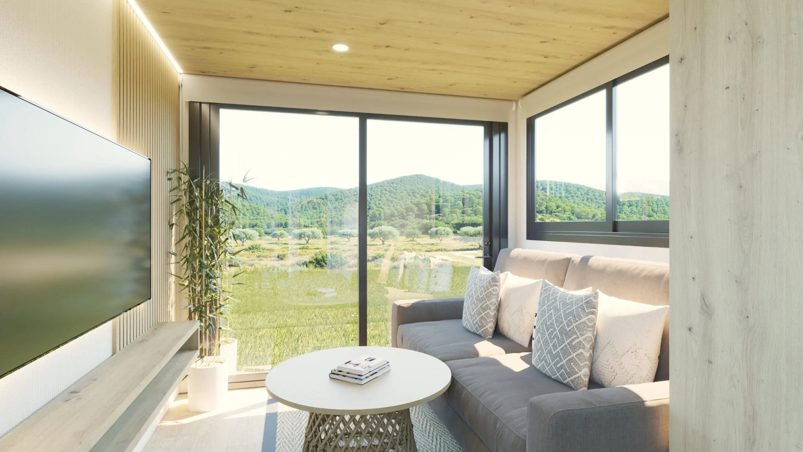 Ambos modelos están construidos con paneles sándwich aislantes, carpinterías de aluminio de alta calidad y ventanas de vidrio acrílico (PMMA), resistentes, ligeras y con una excelente transparencia. Incorporan iluminación LED, climatización eficiente y materiales sostenibles, garantizando confort durante todo el año.